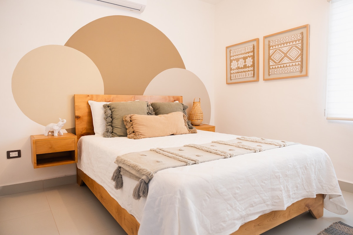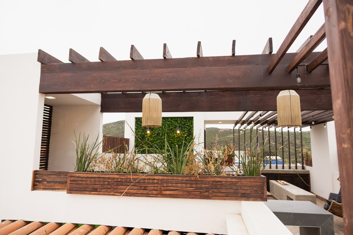 A stylish boho retreat in Valle de Guadalupe, Best suited for up to 6 adults comfortably, the home can accommodate up to 8 guests incluiding the sofa bed located in the entry sitting area. A ideal for couples and families seeking a cozy and intimate stay.